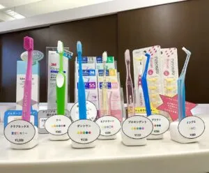 受付に当院がおすすめしている歯ブラシを見やすく置いてみました☺️
