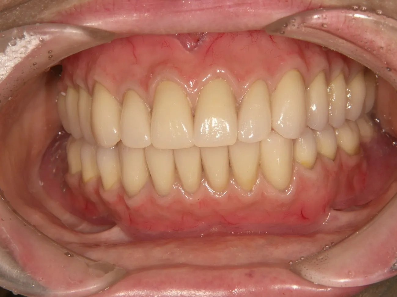 取り外しの硬さのコントロールが通常のテレスコープコーヌスデンチャーよりも容易で、ほどよい装着感が得られます。術者可撤式ブリッジですので清掃性に優れていますが、普段の食事などで外れるようなことはありません。